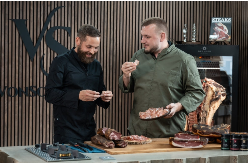 Hier beginnt der Weg zu unvergleichlichem Geschmack. Dry Aged Fleisch ist nichts Neues - seit jeher wird diese Methode genutzt, um Fleisch auf natürliche Weise zu veredeln und seinen einzigartigen Charakter zu entfalten. Heute verbinden wir diese Tradition mit modernem Wissen und handwerklicher Perfektion.