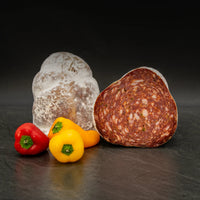 Zutaten: Schweinefleisch, Schweinespeck, naturbelassenes Steinsalz, Gewürze (u. a. Paprika), Rohrzucker, Edelschimmel, Naturdarm vom Schwein.