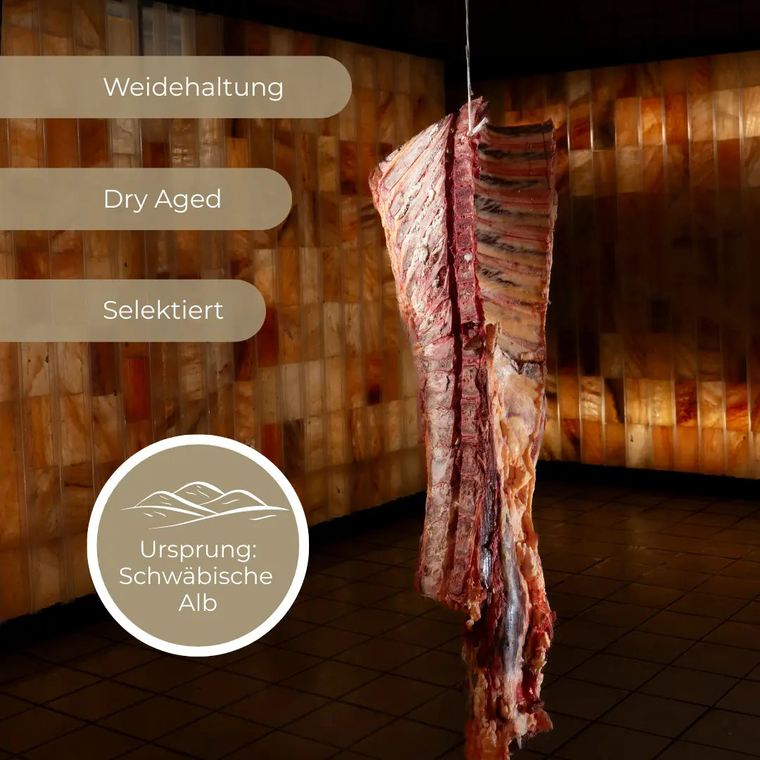 Erst das feine Mikroklima in unseren Reiferäumen und das nach der Schlachtung erhaltene Mikrobiom des Tieres, welches auf den Schlächtkörper übergeht entfalten die komplexen Stoffwechselprozesse, die für die Textur, Aromen und den einzigartigen Geschmack entscheidend sind.