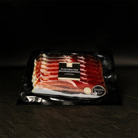 Am besten mit einer Aufschnittmaschine oder einem scharfen Schinkenmesser hauchdünn aufschneiden - so entfaltet sich das feine Aroma optimal.